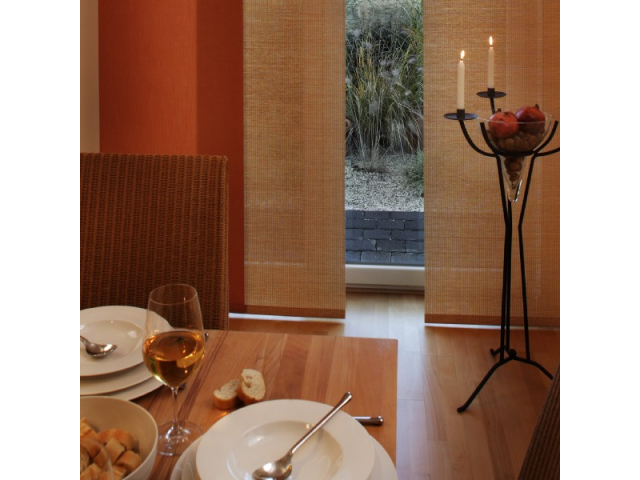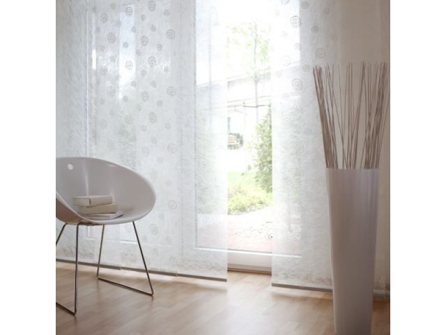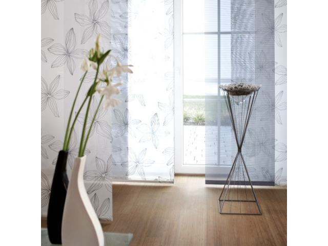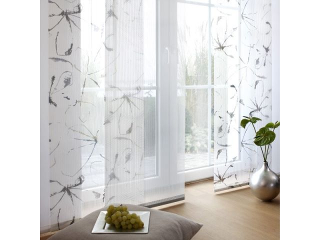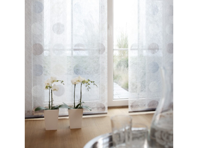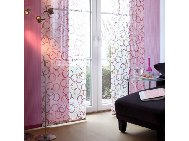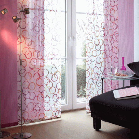 Moderne Wohnraumgestaltung mit Flächenvorhängen bzw. Schiebevorhängen