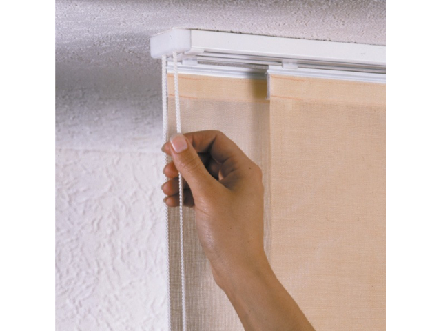 Die Stoffbahnen sind in 2- bis 5-läufige Schienen eingehängt. Die gibt es in klassischem Weiß oder edlem, gebürstetem Aluminium.