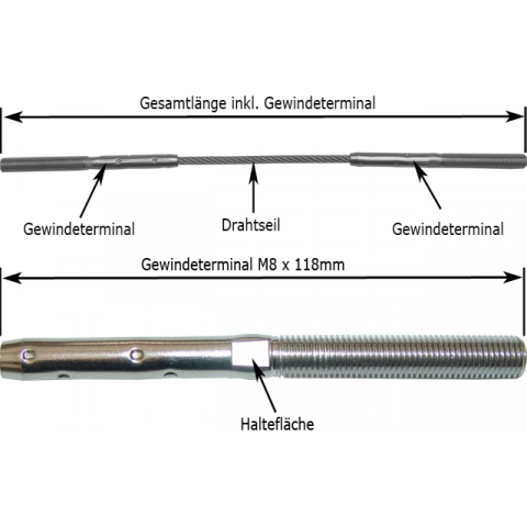 Gewindeterminal M8 x 57mm für Seil Ø 4mm