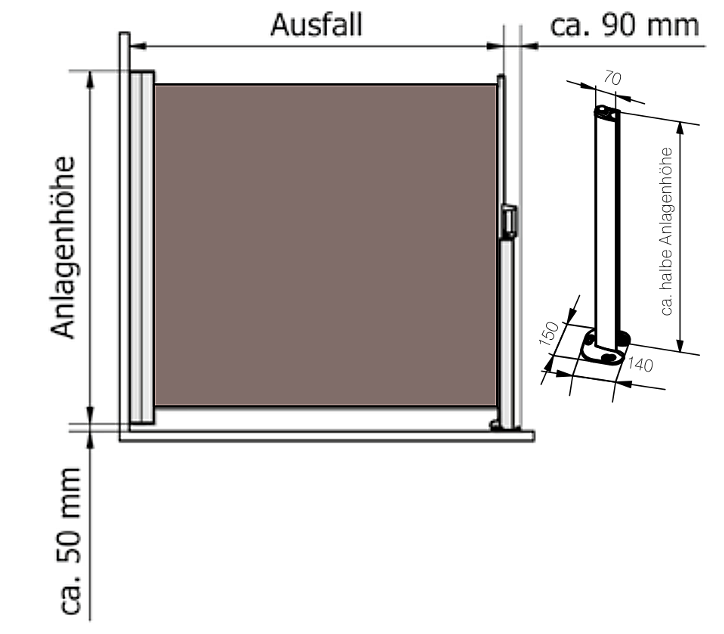 - Höhen von 1300 mm bis hin zu 2100 mm können seitlich verschattet werden