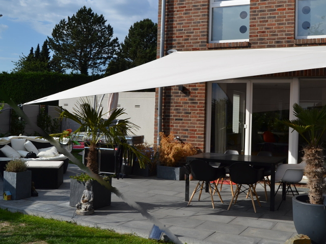 Dieses Sonnensegel Viereck ist durch die nahezu beliebige viereckige Form vielseitig einsetzbar. So u.a. für Garten, Terrasse, Balkon und Schwimmbäder.